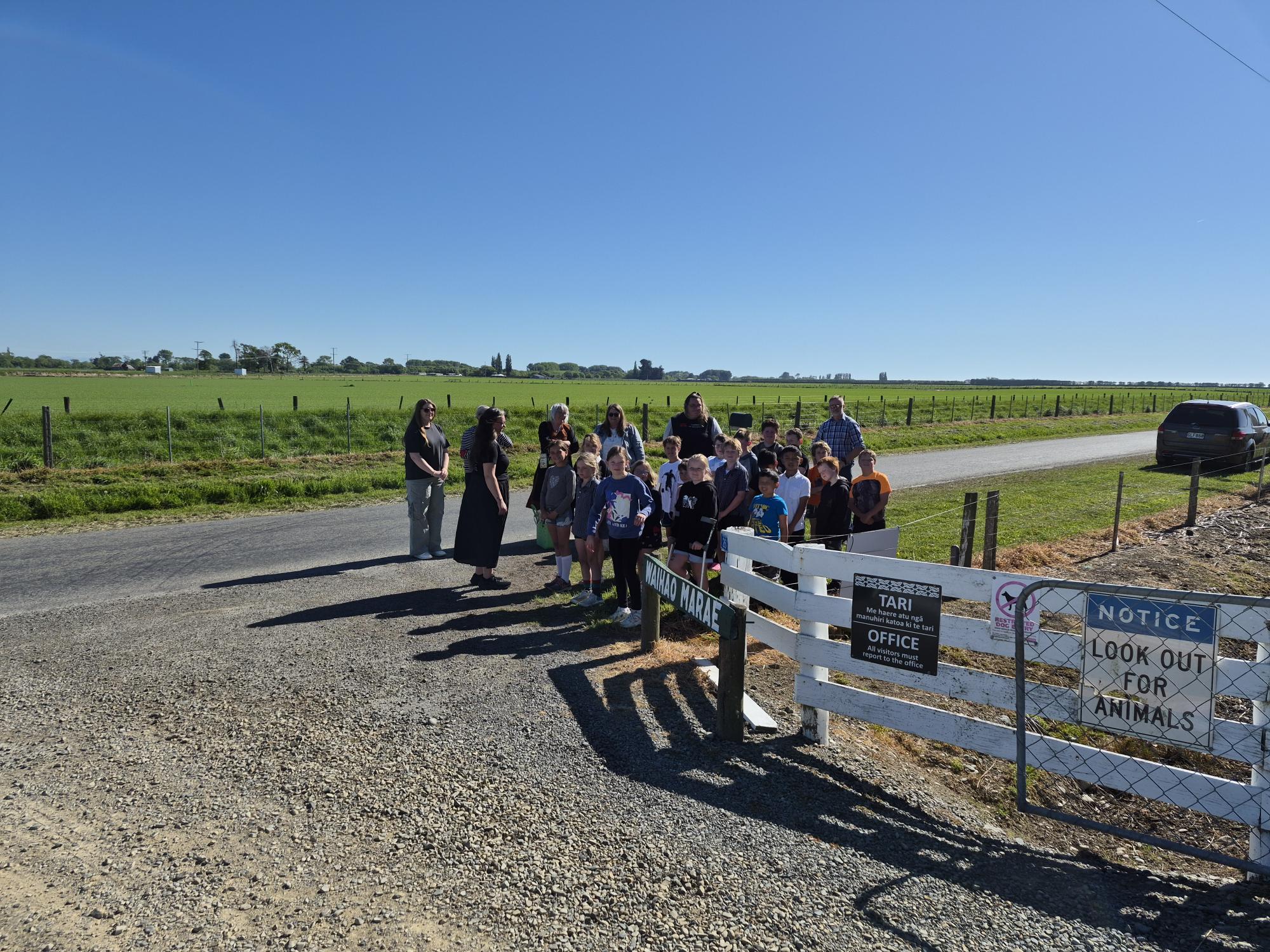Waihao Downs Kura gather at 26 Māori Road, November 2025.